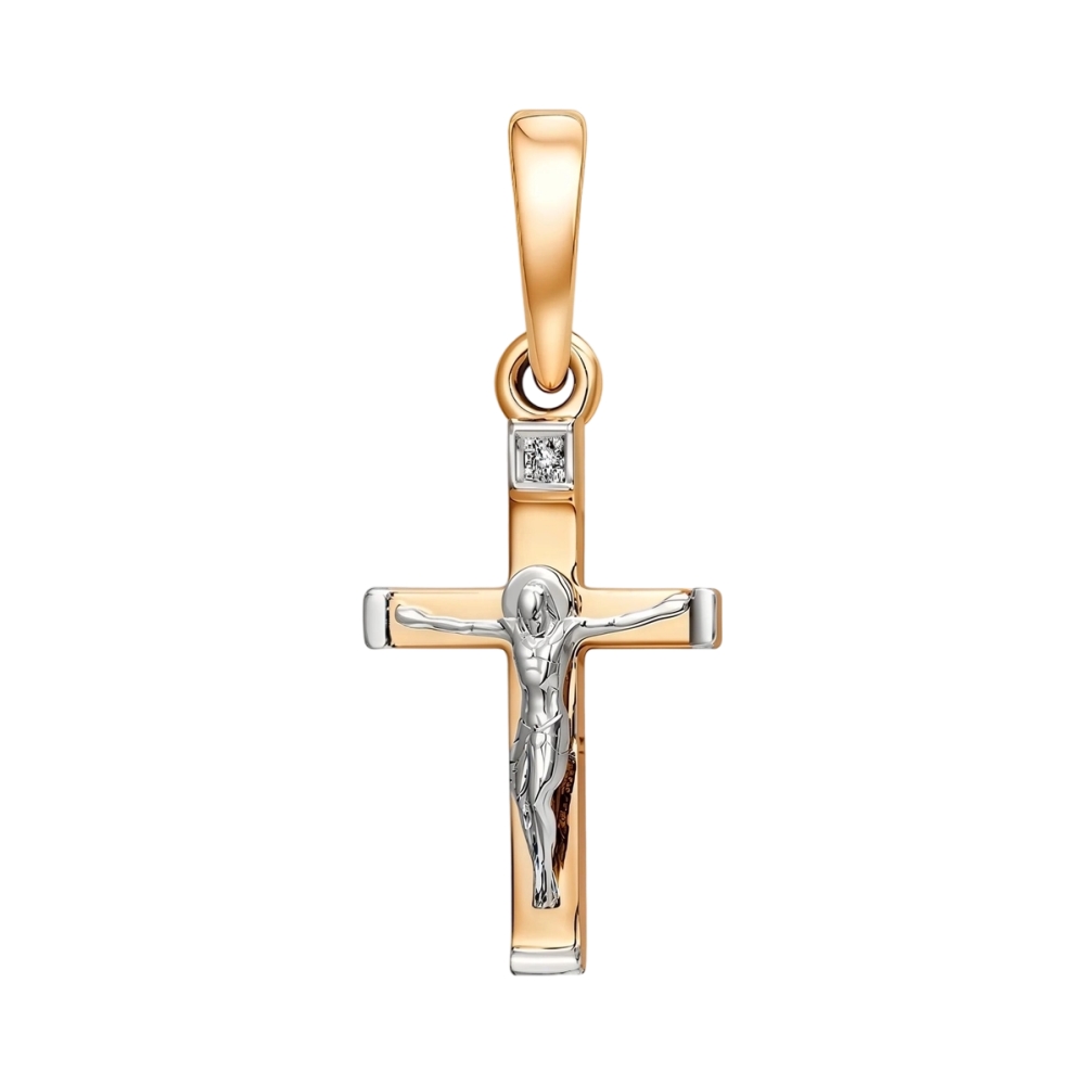 Крест из красного золота с бриллиантом