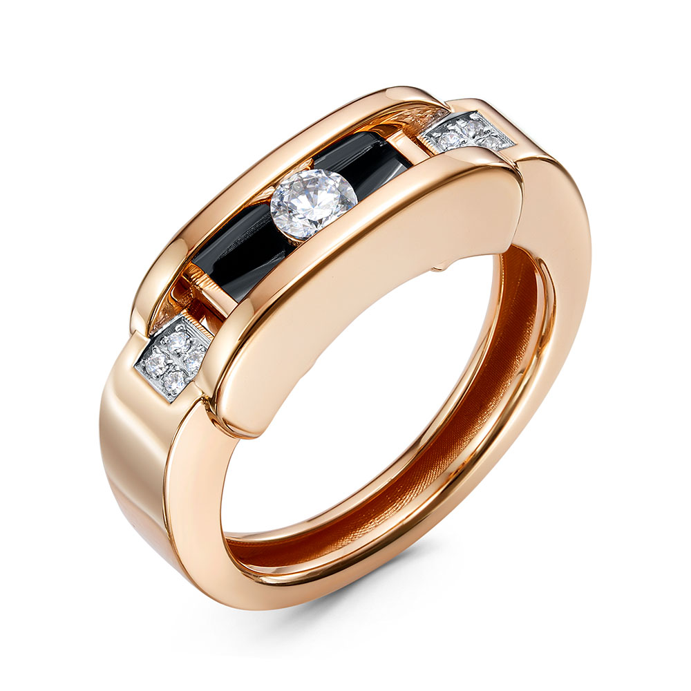 Кольцо из красного золота с бриллианитом, ониксом и фианитами