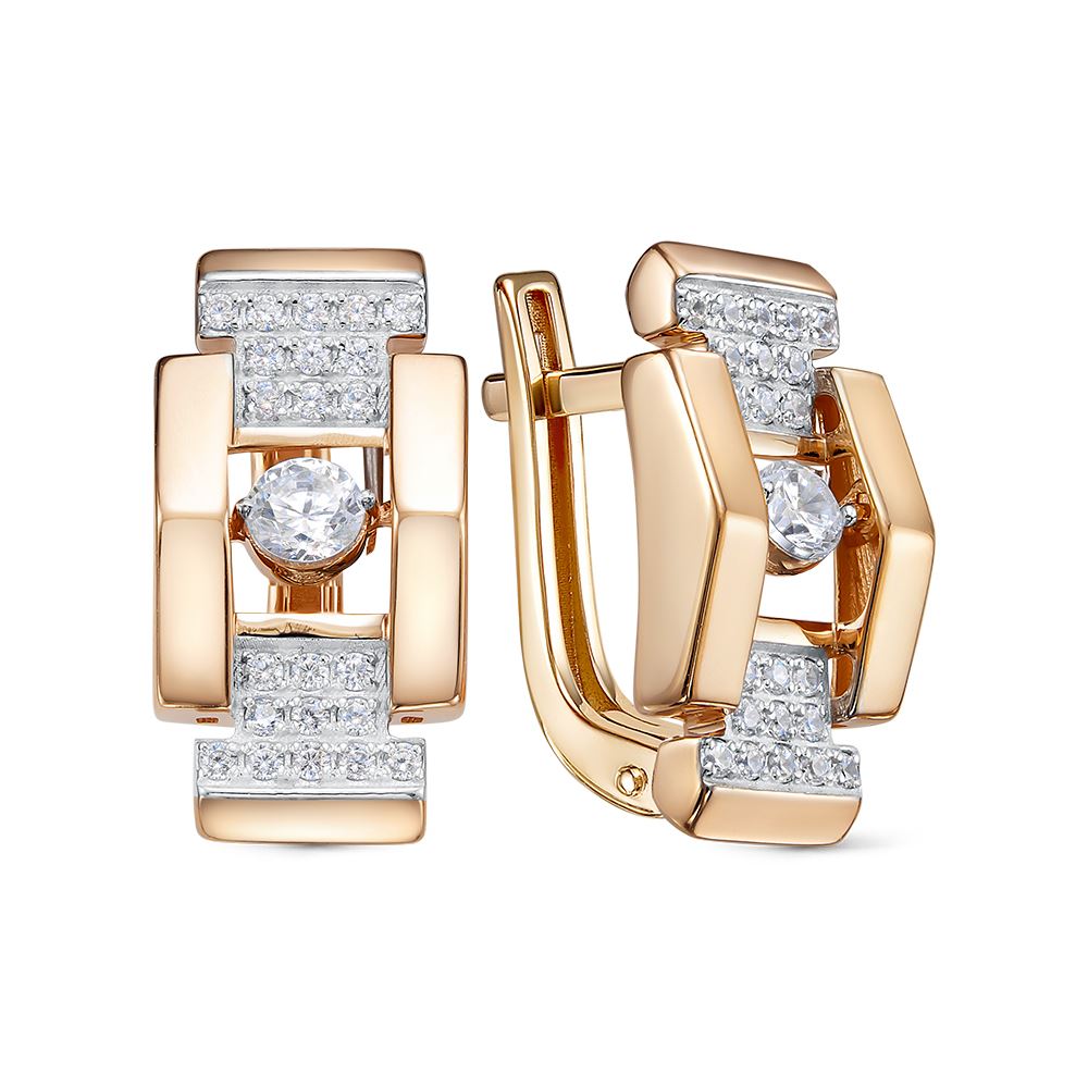 Серьги из красного золота с бриллианитами и фианитами